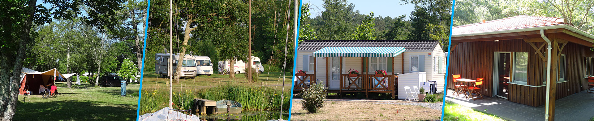 L’autre moitié du Camping du Lac (zone Peurnaout et Peliou), pour grande partie piétonne, est dédiée aux emplacements à l’année pour mobil-homes et chalets.